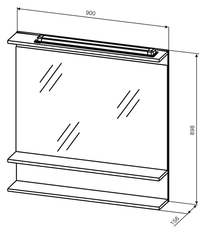 | Оснащение зеркала | подсветка, розетка, крепления, полка |