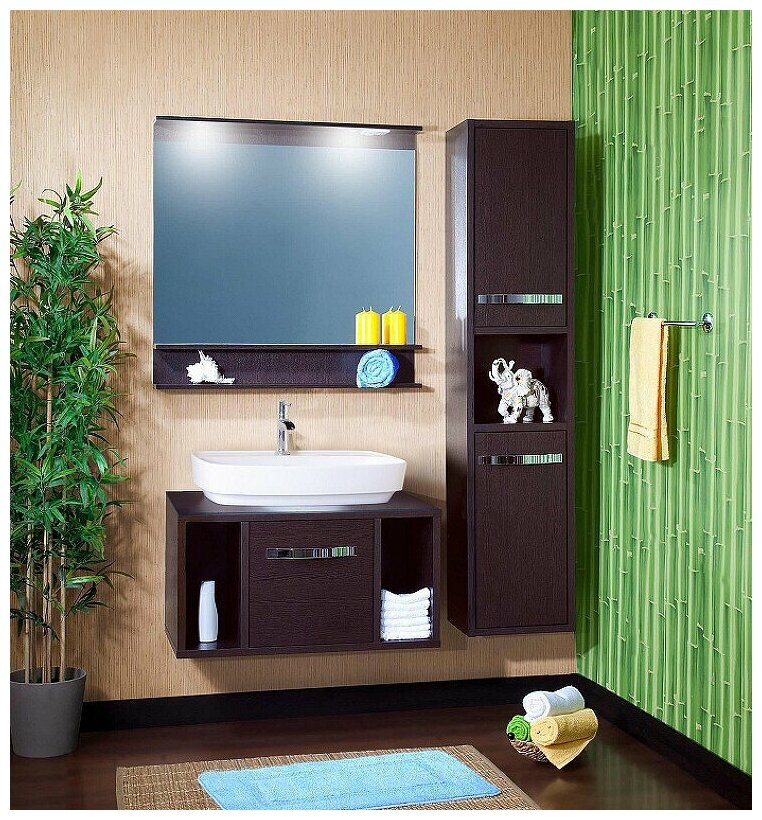Зеркало Бриклаер Чили 90 венге С отлично подойдет как для просторной ванной комнаты, так и для небольшого помещения.