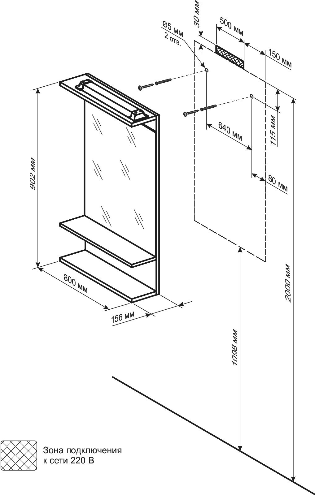 | ВКоробке | Зеркало - 1 шт. Втроенный светильник – 2 шт. Инструкция - 1 шт. |