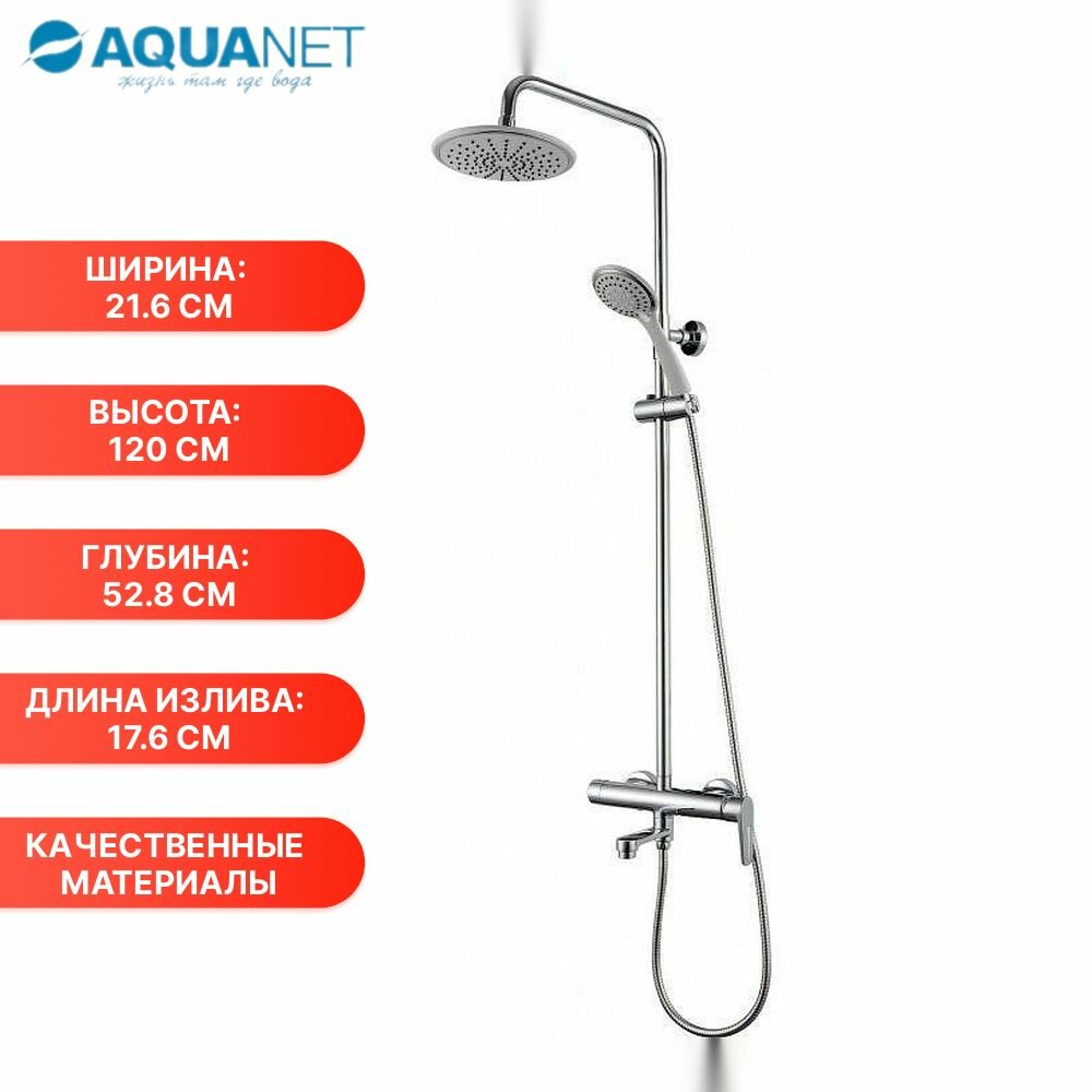 Душевая стойка Aquanet Logic будет великолепно гармонировать с вашим интерьерным решением и придаст ему дополнительные возможности. Душевые стойки Aquanet включают в себя все необходимые функции для современной душевой. Благодаря оптимальному диаметру душевой лейки Logic в 11.5 см, вы получите полное наслаждение от принятия душа. Высота душевой штанги у Aquanet Logic 120 см, позволит регулировать высоту размещения лейки в широком диапазоне. Душ Aquanet имеет 3 режима настройки потока струи, что даст возможность настройки системы под себя. Aquanet Logic оснащен шлангом 150 см, это идеальная длина для комфортного использования. Материал шланга металлический отлично препятствует скручиванию, и долгое время не теряет свои свойства. Диаметр верхнего (тропического) душа, которым оснащен составляет 21.5 см.