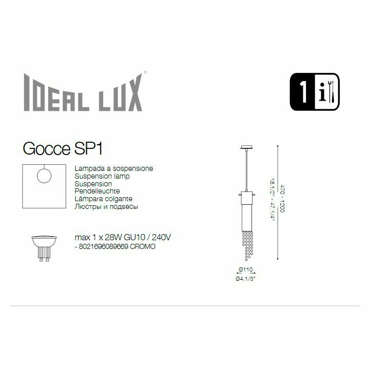 Сервис сравнения цен СкидкаГИД предлагает сравнить цены на товар «Подвесной светильник Ideal Lux Gocce SP1»