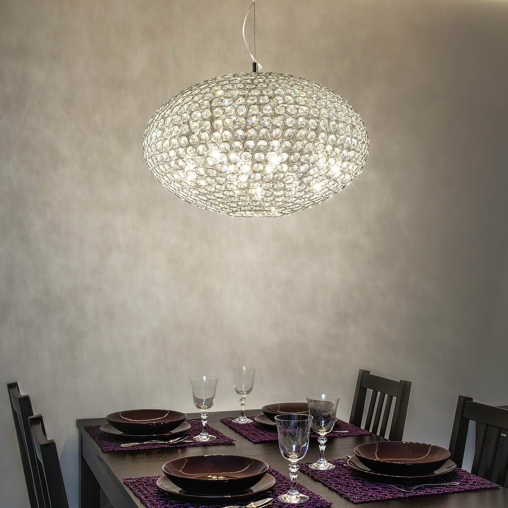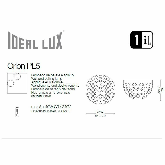 Потолочный светильник Ideal Lux 12x28Вт 3600лм 2700K G9 Хром Металл/Хрусталь 059129. Рассеиватель состоит из металлических колец с восьмиугольными хрусталиками внутри.