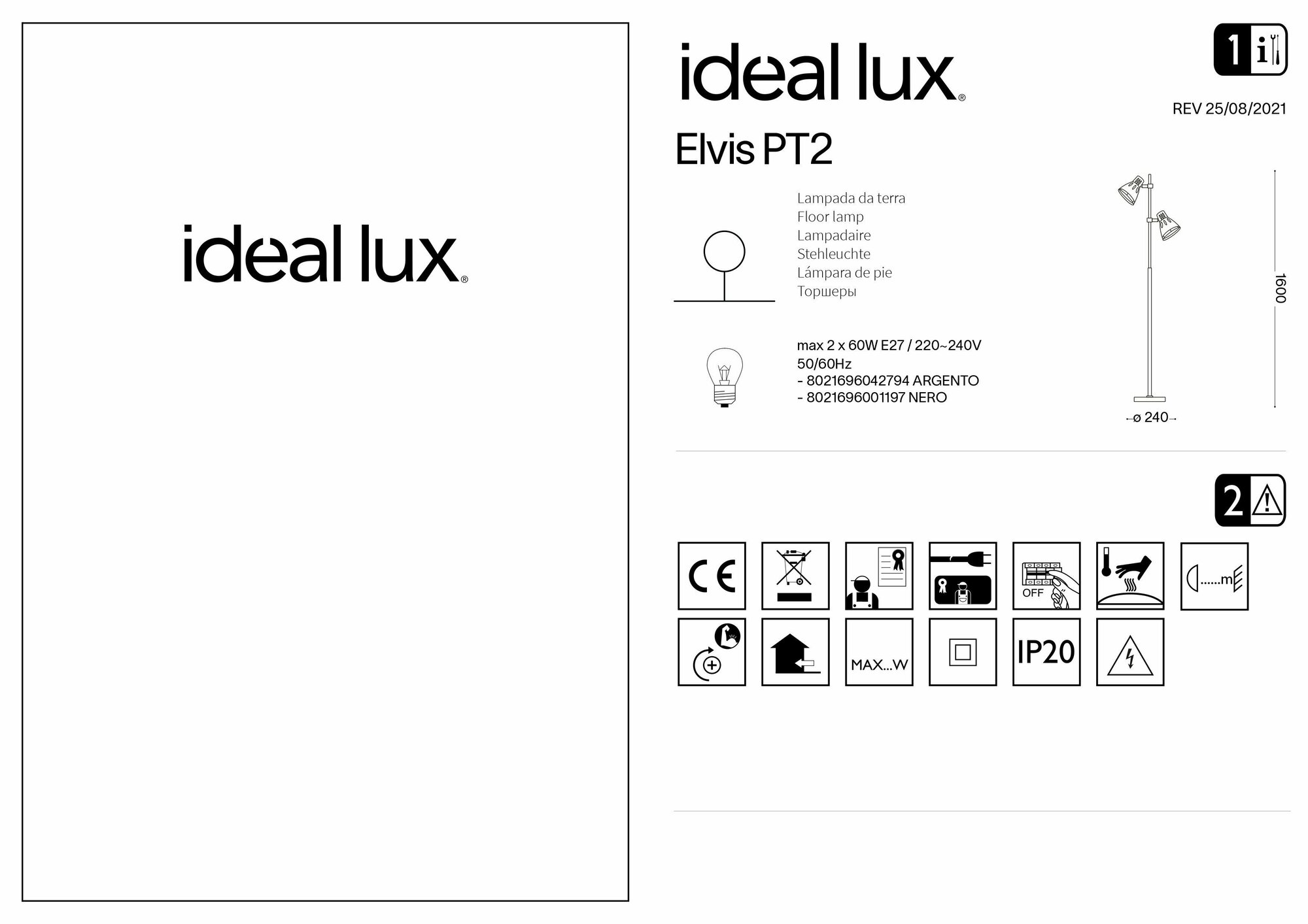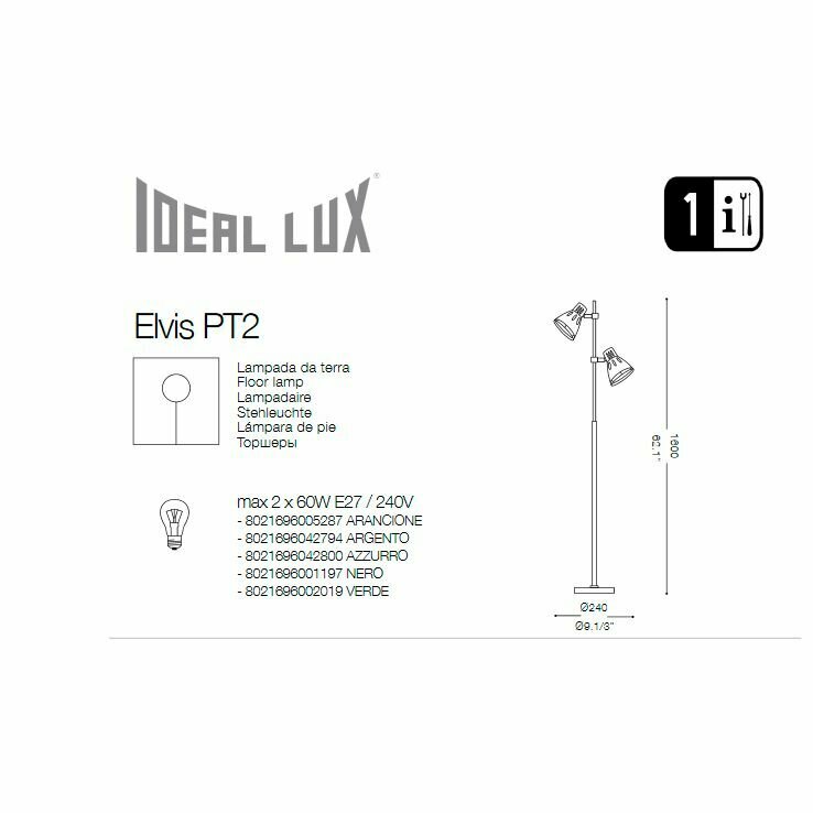 Торшер Ideal Lux Elvis PT2 Nero