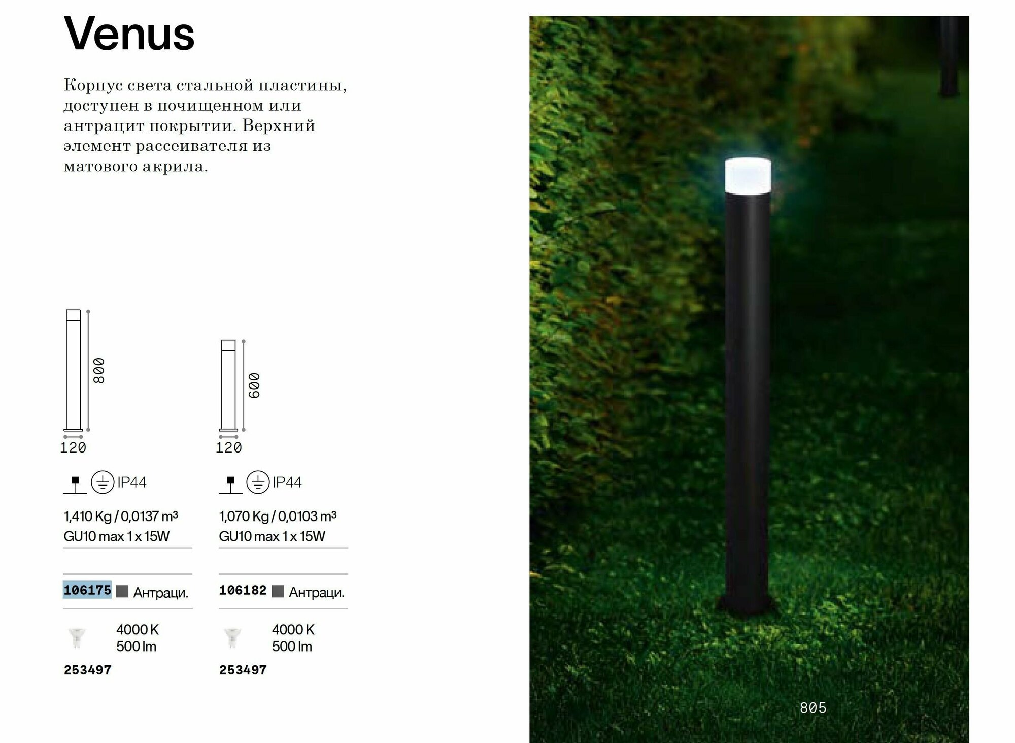 Невероятная модель от итальянской компании Ideal Lux относится к коллекции Venus Antracite и отлично подойдет для установки на улицу. Уличный светильник Ideal Lux с цилиндрическими плафонами осветит помещение площадью 0.8 кв.м. Производитель Ideal Lux рекомендует использовать для устройства галогенные лампы с цоколем GU10.