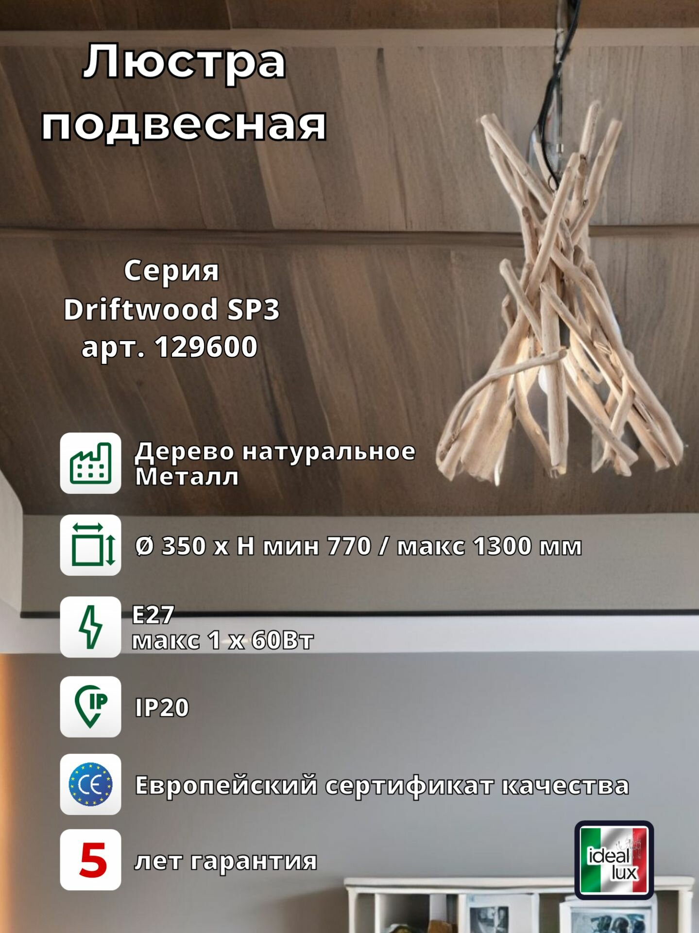 Сервис сравнения цен СкидкаГИД предлагает сравнить цены на товар «Подвесной светильник Ideal Lux Driftwood SP1»