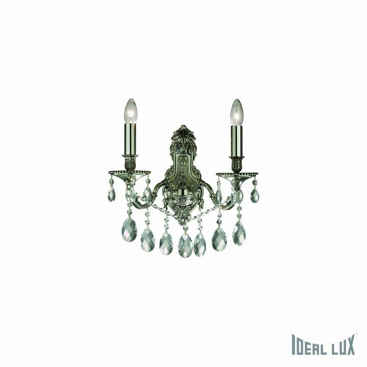 Светильник настенный Ideal Lux Gioconda AP2 макс.2x40Вт IP20 Е14 230В Серебро/Прозрачный Металл/Хрусталь Без ламп 044910.- Арматура светильника полностью из литого металла цвета старинного серебра.- Восьмиугольные и круглые подвески из хрусталя с фацетом.- Длина светильника 310 мм, высота 425 мм, глубина 215 мм.- Класс электробезопасности: I.- Степень защиты IP: 20.- Европейский сертификат качества: CE.- Рабочая температура от 0° до +40°.- Ламп в комплекте нет.- Рекомендуемая лампа: артикул 101224 (Oliva 4Вт 470Лм 3000К CRI80 Е14 Прозрачный Не диммируемая).- Гарантия: 5 лет.- Варианты доступных цветов: Серебро (арт. 044910), Золото (арт. 060491).- Для проектирования в AutoCAD можем предоставить файлы 3D модели.- При отсутствии товара на нашем складе возможен его заказ на фабрике в Италии. Для заказа необходимо связаться с нами используя чат маркета.