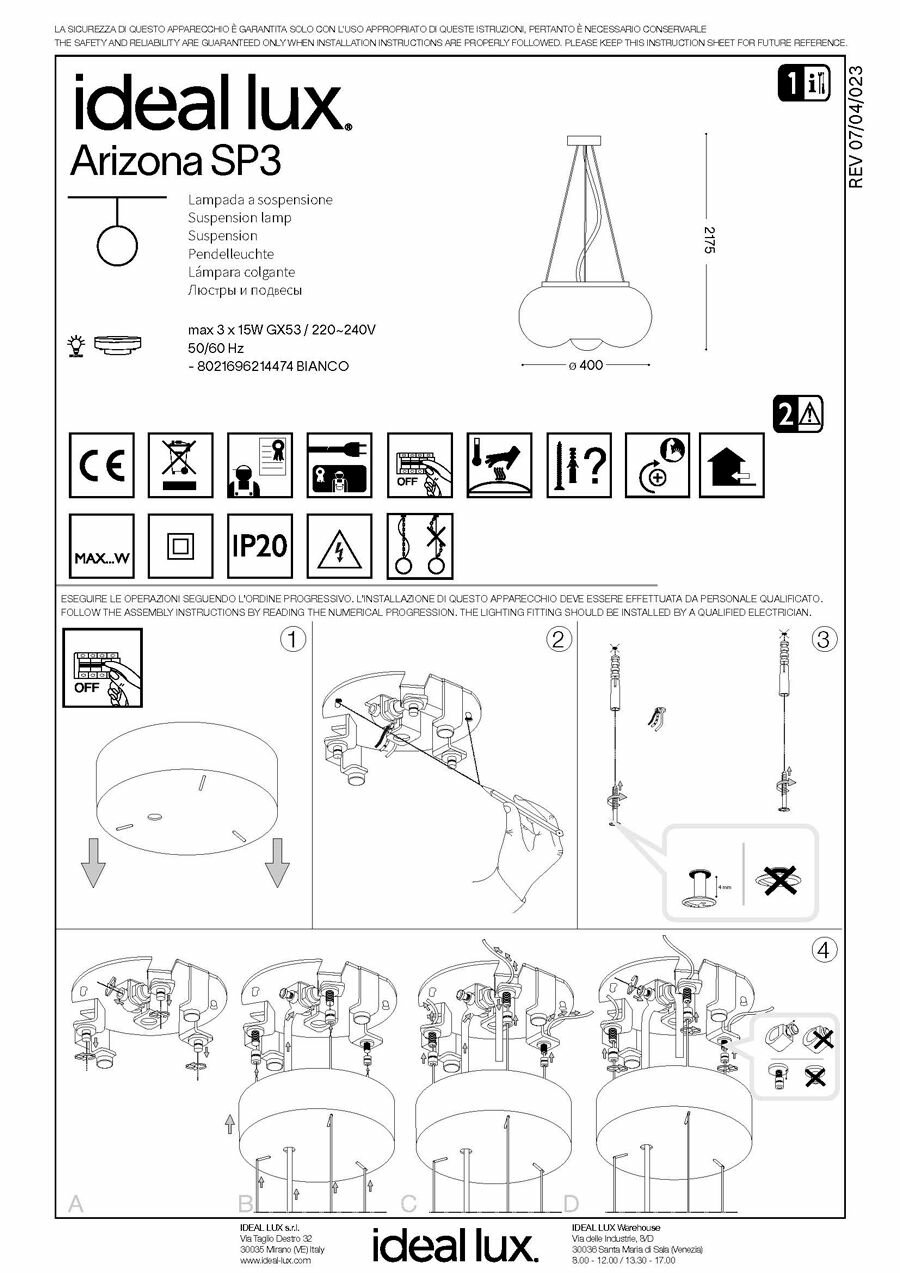 Светильник представляет оригинальную линейку производителя выполненную в стилевом решении Скандинавский. Модель прекрасно впишется в дизайн интерьера и станет ключевым элементом световой композиции.Характеристики, качество материалов полностью соответствуют Европейским стандартам и требованиям центра сертификации Ростест: стандартный цоколь GX53, мощностью лампочки 15 W, совместимый с типом лампы: Галогеновая. В производстве корпуса, плафонов, декоративных элементов изделия использованы: Металл, Стекло. Цветовая основа металлических компонентов — Латунь, Белый.Подвесной светильник Ideal Lux 214481 из серии Arizona идеальна Для кухни кв. м или помещения примерно соответствующего этому размеру. Степень пылевлагозащиты — IP20.Наш интернет-магазин поставляет представленный товар в фирменной брендовой упаковке, инструкцией по сборке на русском языке и необходимыми деталями для успешной установки на потолок. Приобретая осветительный прибор в MoscowSvet Вы получите расширенную эксклюзивную гарантию 2 года и самую низкую цену 54550 рублей.