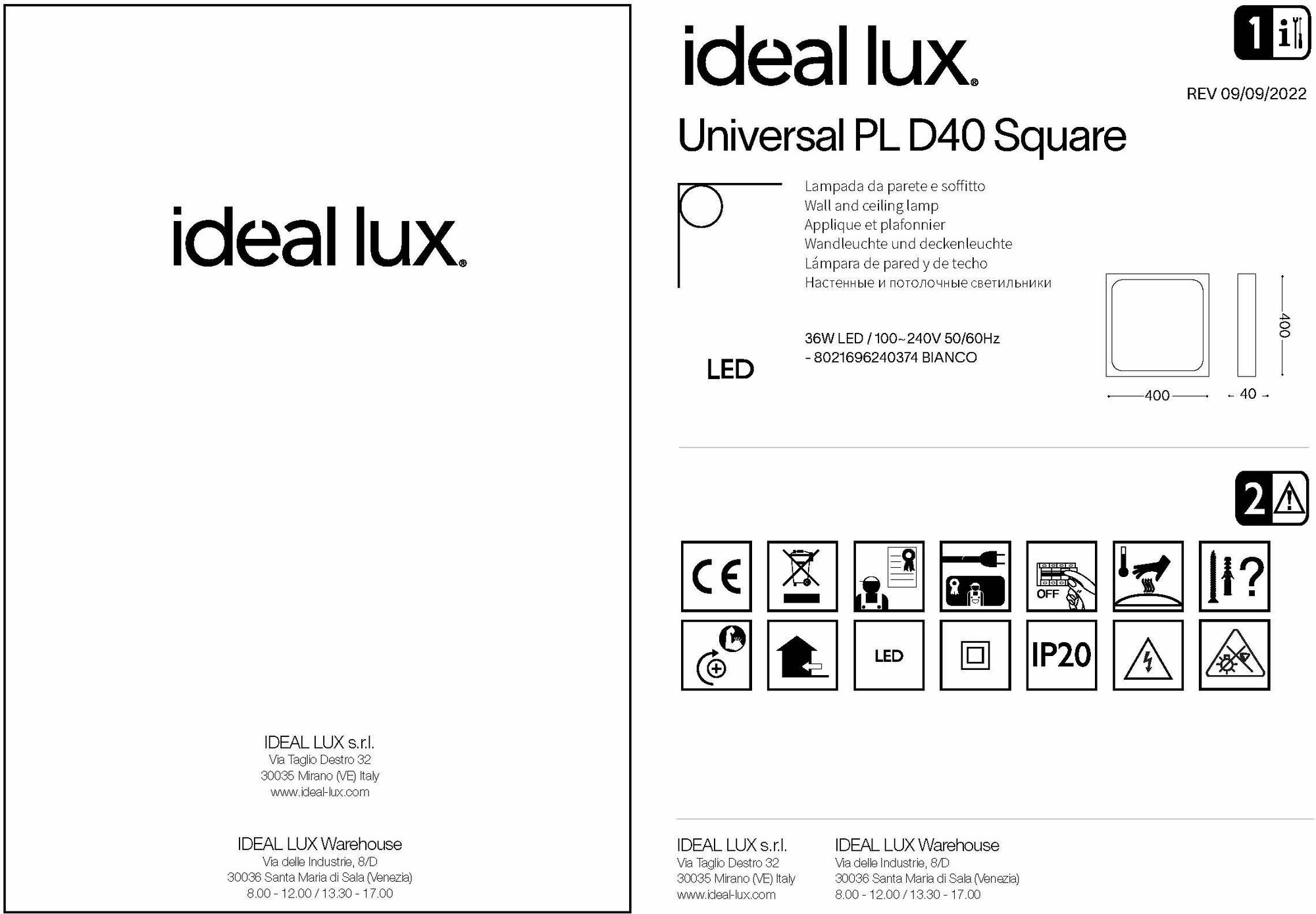 Настенно-потолочный светодиодный светильник Ideal Lux Universal D40 Square