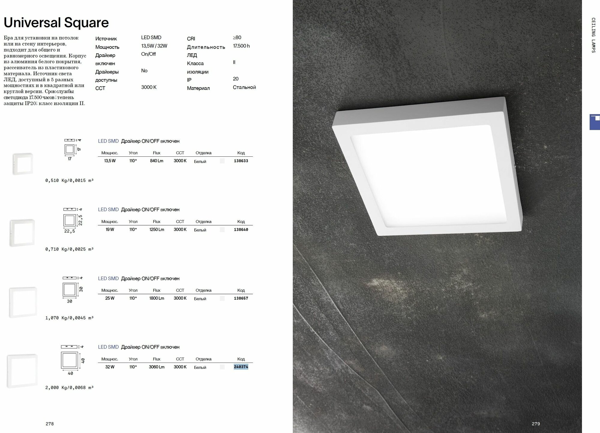 Сервис сравнения цен СкидкаГИД предлагает сравнить цены на товар «Настенно-потолочный светодиодный светильник Ideal Lux Universal D40 Square»