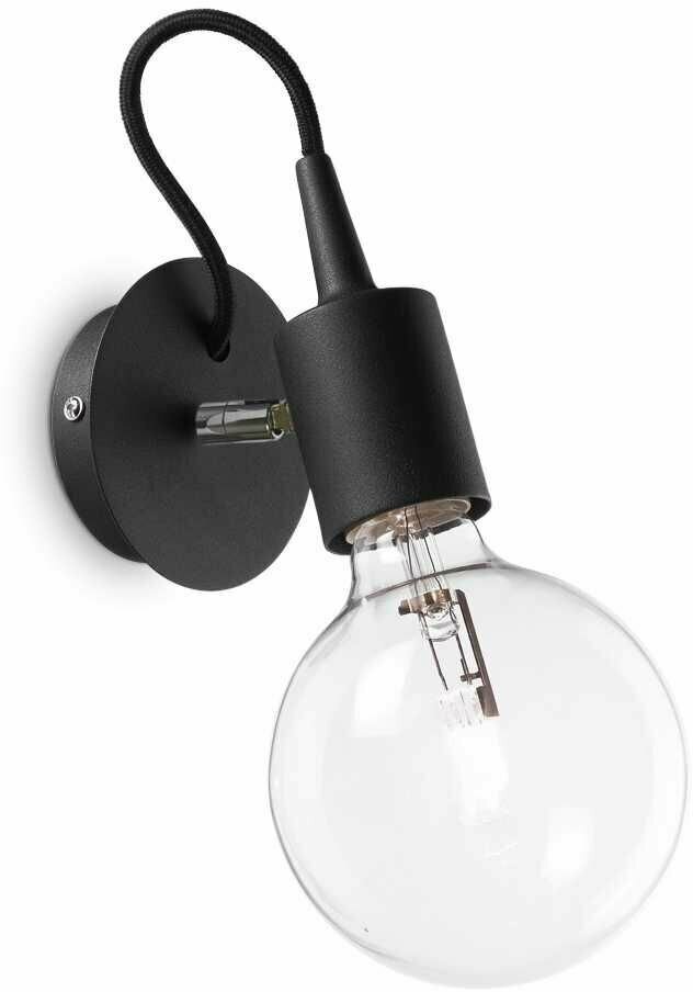 Светильник подвесной Ideal Lux Edison SP1 8Вт Globo D125 3000К Е27 IP20 230В Черный Металл 113319. Потолочная чаша и покрывающие патроны колбы из металла окрашенного в чёрный цвет. Электрический провод покрыт тканью. Выста 23см/макс.231см. Лампа в комплекте.