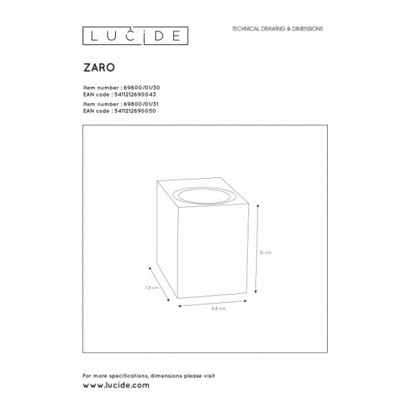 Архитектурная подсветка Zaro IP44 - продукт известной компании Lucide (Бельгия). Имеет максимальную мощность 35 Вт, освещает площадь до 2.5 кв. м. Отлично подойдет для таких мест, как веранда и беседка, фасад. Впишется в интерьеры следующих стилей: техно.