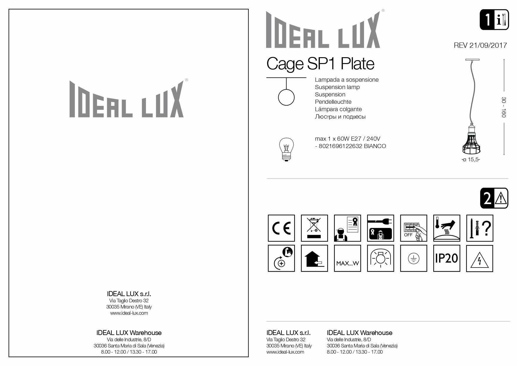 Подвесной светильник Ideal Lux Cage SP1 Plate