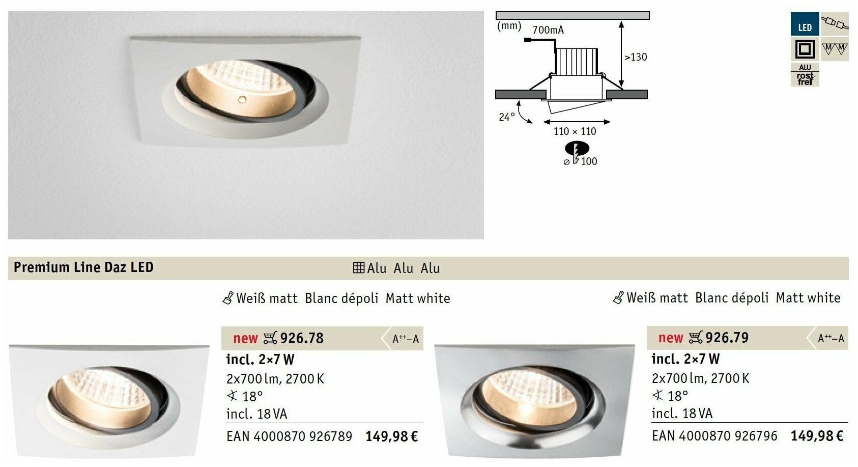 Сервис сравнения цен СкидкаГИД предлагает сравнить цены на товар «Встраиваемый светодиодный светильник Paulmann Premium (2 шт.) / 92678»