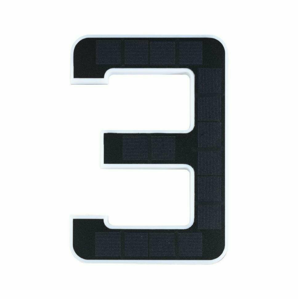 Уличный настенный светильник Paulmann Номер дома 3 LED 0.2Вт 6лм 3000К IP44 Пластик Солнечная батарея Сменный аккумулятор . Светящийся номер дома с солнечной батареей. Светящаяся цифра 3 - это идеальный светильник с номером дома, как отдельно, так и с дополнительными цифрами. Благодаря работе от солнечной энергии его можно прикрепить к стене дома независимо от розетки. Днем невидимая солнечная панель заряжается солнечным светом, ночью декоративный номер подсвечивается непрямым светом. - Цветовая температура: 3000К - теплый белый. - Степень защиты IP: IP44 - защита от брызг. - Включает сменные батареи.