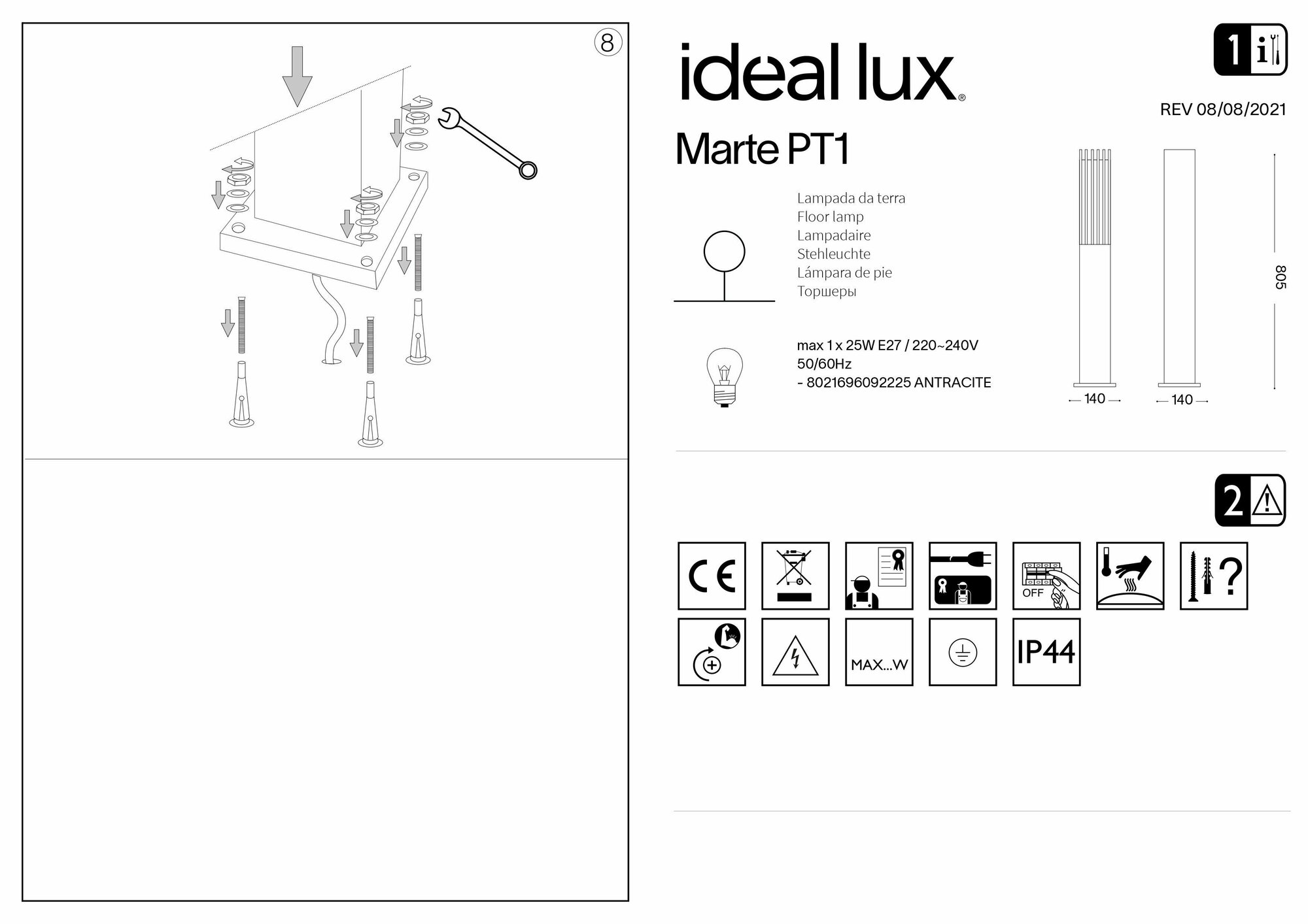 Уличный светильник Ideal Lux 092225 Marte PT1