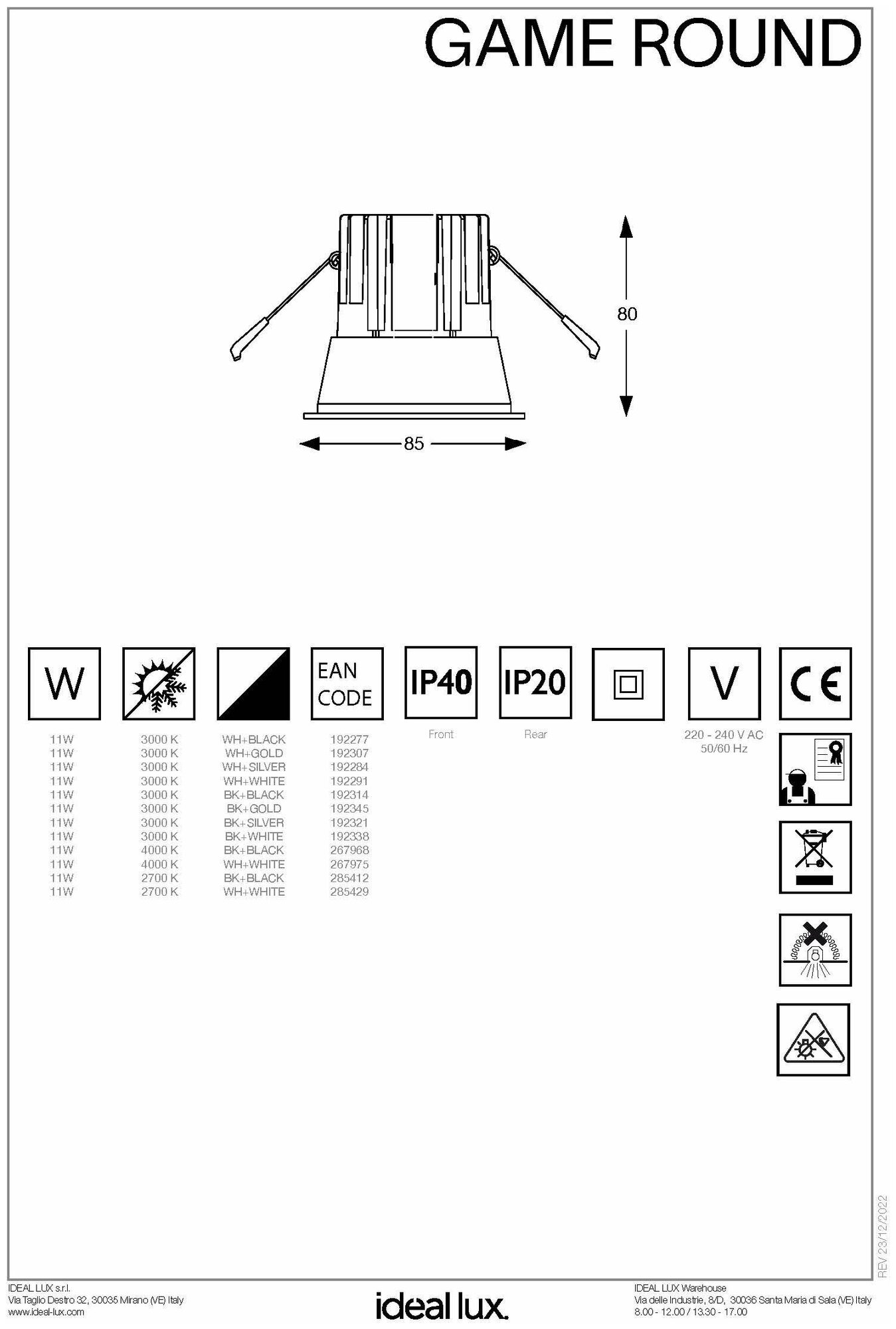 Встраиваемый светодиодный светильник Ideal Lux 192314 Game Round Bk Bk