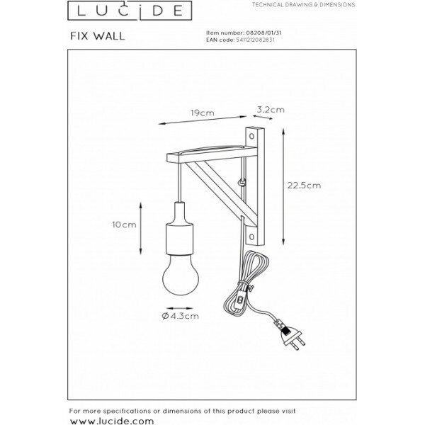 Бра Fix - продукт известной компании Lucide (Бельгия). Имеет максимальную мощность 60 Вт, освещает площадь до 3 кв. м. Отлично подойдет для таких мест, как прихожая и коридор, кафе, кабинет, офис. Впишется в интерьеры следующих стилей: лофт, скандинавский.