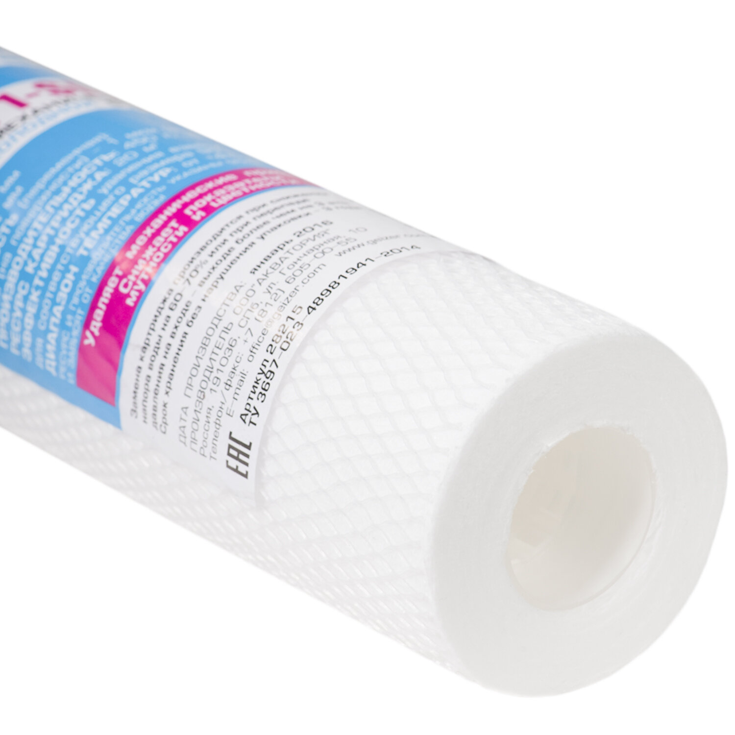 Картридж ПФМ 5/1 - 10SL изготовлен из вспененного полипропилена. Имеет градиентную пористость: диаметр поры уменьшается при движении воды внутрь картриджа, благодаря чему работает весь объем фильтрующего материала.