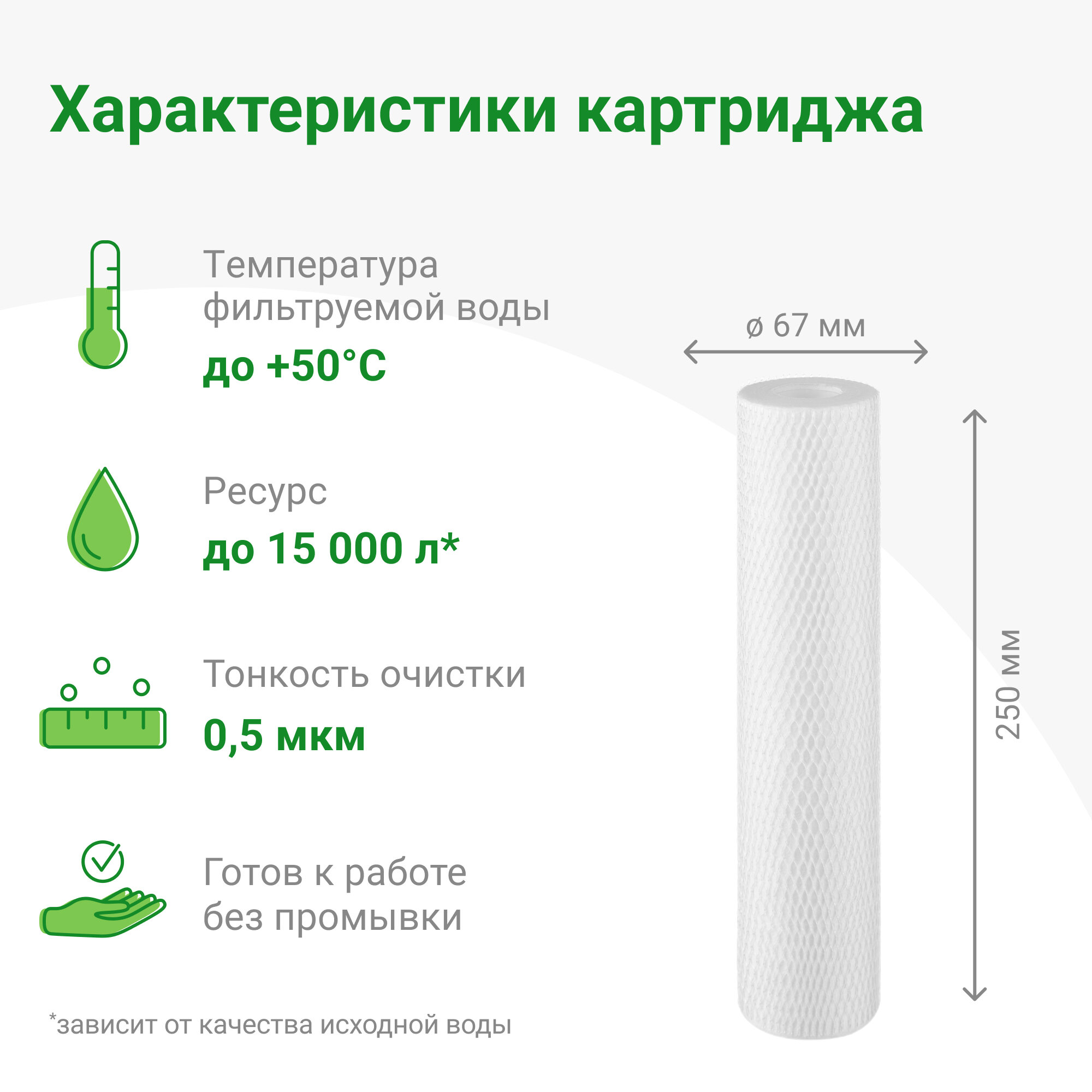 - Ресурс (в зависимости от качества исходной воды): 15 м3