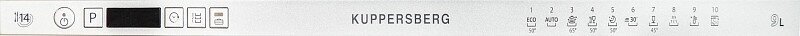 Встраиваемая посудомоечная машина Kuppersberg может отмыть за один рабочий цикл 14 комплектов посуды и столовых приборов, затратив всего 9 литров воды и 1050 Вт электроэнергии. Она получила 10 рабочих программ, среди которых предусмотрены специальные режимы для мытья посуды с половинной загрузкой, мытья хрупкой посуды и сильно загрязненной посуды, а также экспресс-программа и экономичная программа.