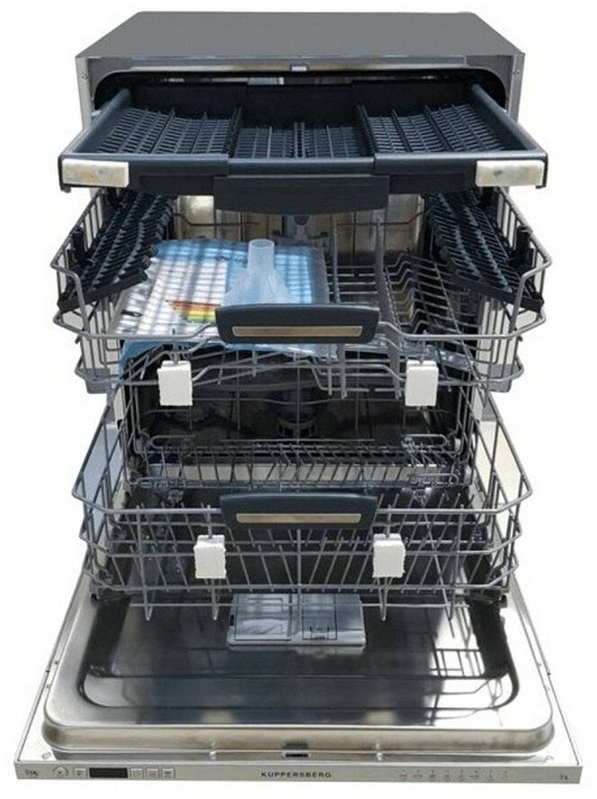 Посудомоечная машина Kuppersberg полностью встраивается в гарнитур и делается незаметной на любой кухне. Объем посудомоечной машины позволяет загрузить в нее 14 полных комплектов посуды, а электронное управление и наличие дисплея, помогут быстро и точно выбрать программу и температурный режим. Также в данной модели есть возможность отсроченного старта и функция Multizone.