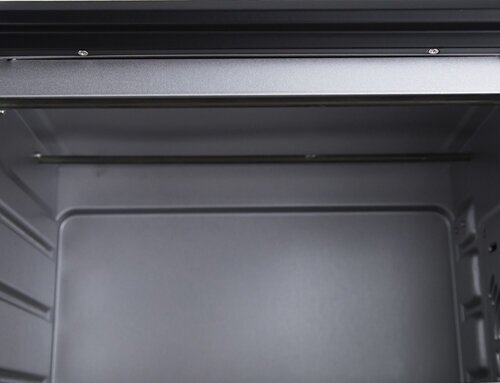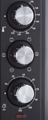 Мини-печь Moulinex черного цвета оснащена 6-ю режимами (конвекция, разморозка, гриль, бисквиты, нижний нагрев, традиционный), благодаря которым в ней можно готовить различные блюда. На корпусе находится механический переключатель для комфортного управления устройством. Встроен звуковой таймер, максимальное время два часа, при этом его в любой момент можно вернуть в исходное положение. Максимальная температура составляет 240?С.