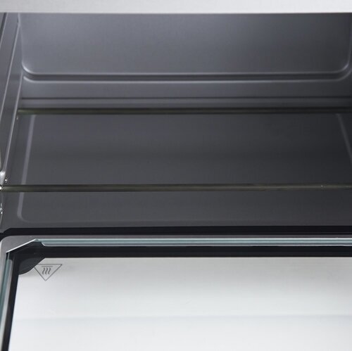 Благодаря вентилятору модель защищена от перегрева. Корпус произведен из жаропрочной стали. Дверца изготовлена из двойного стекла, поэтому она сохраняет тепло и предохраняет от ожогов. Есть режим самоочистки.