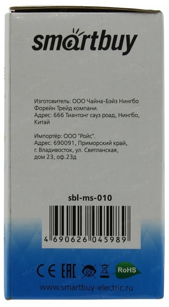 Прибор Smartbuy sbl-ms-024 обладает рабочим радиусом, достигающим 8 метров. Устройство подключается к общей сети электричества и дополняется защитой корпуса IP33. Представленный датчик действует по инфракрасной технологии и моментально срабатывает на движение.