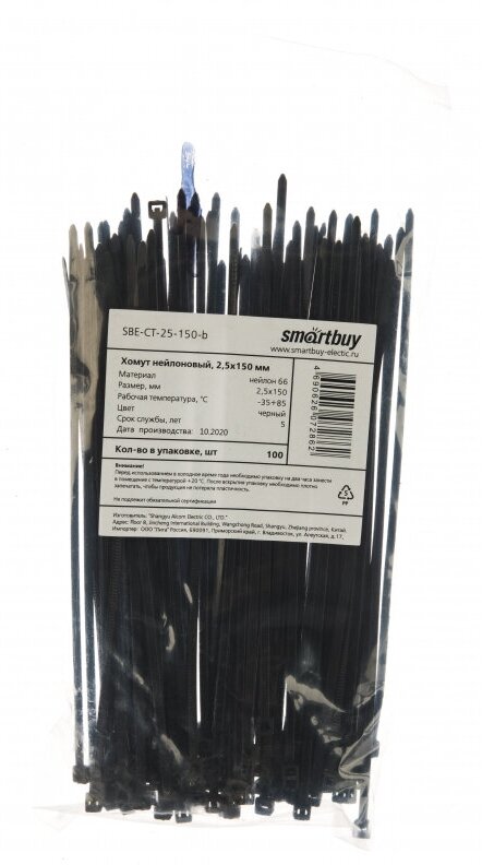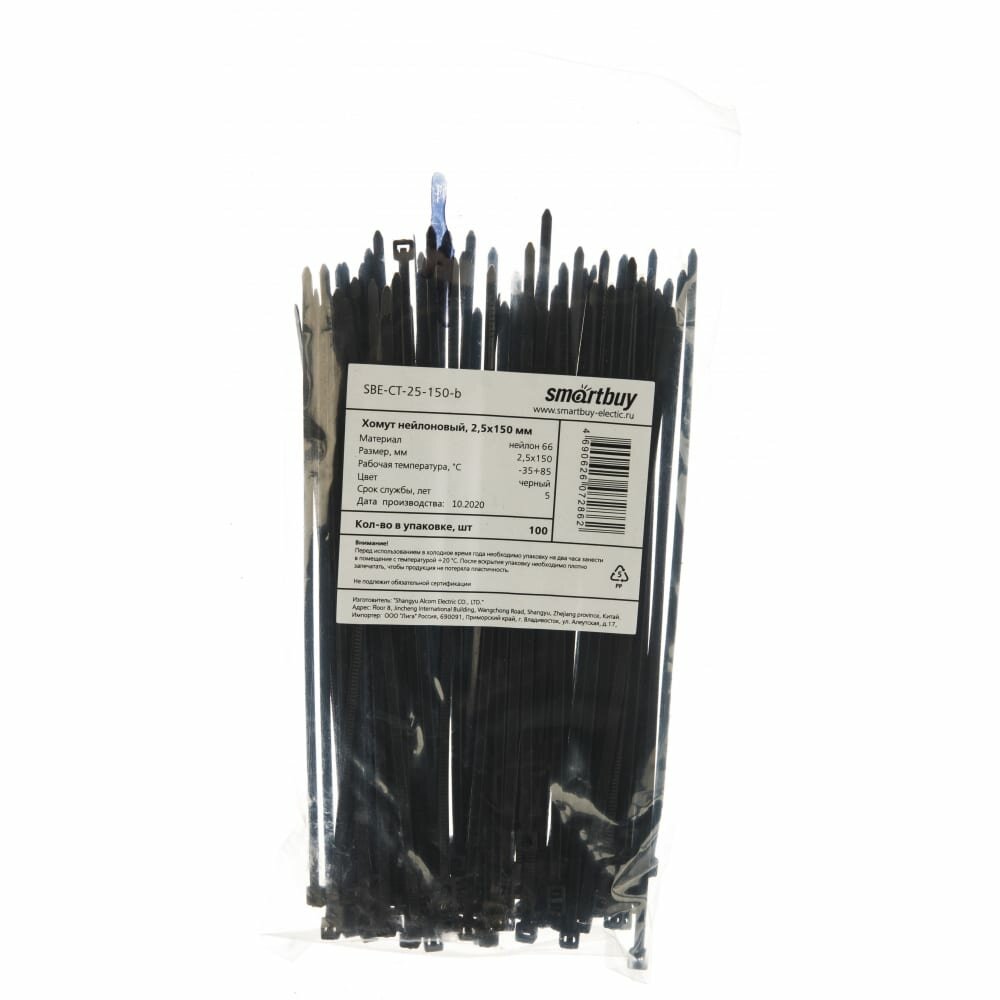 хомут нейлоновый 25х150 черный sbe-ct-25-150-b 100шт smartbuy