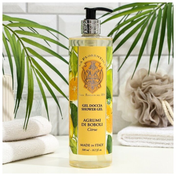 Гель для душа La Florentina - это ароматный и красивый островок Италии, способный создать сказочое настроение в любой ванной комнате и по-настоящему позаботиться о вас. Гель для душа с ароматом солнечного цитруса станет отличным способом побаловать себя и украсит ваш дом, наполнив его озорным, бодрящим ароматом ярких цитрусов. Нежный гель имеет легкую, текстуру, отлично пенится и обогащен оливковым маслом и натуральными экстрактами. Гель не содержит парабеноов, силиконов и агрессивных моющих основ, а значит - бережно заботится даже о самой чувствительной коже, питая и увлажняя ее, не вызывает раздражения, ощущения стянутости, и дарит ощущение свежести и отличное настроение на весь день.