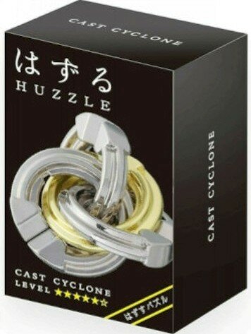 Huzzle Cast Cyclone – новая головоломка Hanayama 2021 года. В ней каждая часть сцепляется с другими тремя особым образом. Изначально все предметы выглядят одинаково, но на самом деле есть различия. Вы их обязательно обнаружите при внимательном рассмотрении. Имеются два разных вида частей головоломки. Дизайн каждого кольца был тщательно рассчитан, сильно ограничивая количество возможных движений и создавая чрезвычайно загадочную и красивую головоломку. Новая Huzzle Cast Циклон – вершина длинной череды сложных головоломок, созданных признанным мастером. Автор: гонконгский дизайнер Киу Вонг. Эта головоломка была проверена перед запуском в производство некоторыми известными авторами головоломок. По их авторитетным оценкам, новая головоломка Huzzle Cast Cyclone уверенно получила оценку сложности «Эксперт» 5***** из шести возможных.