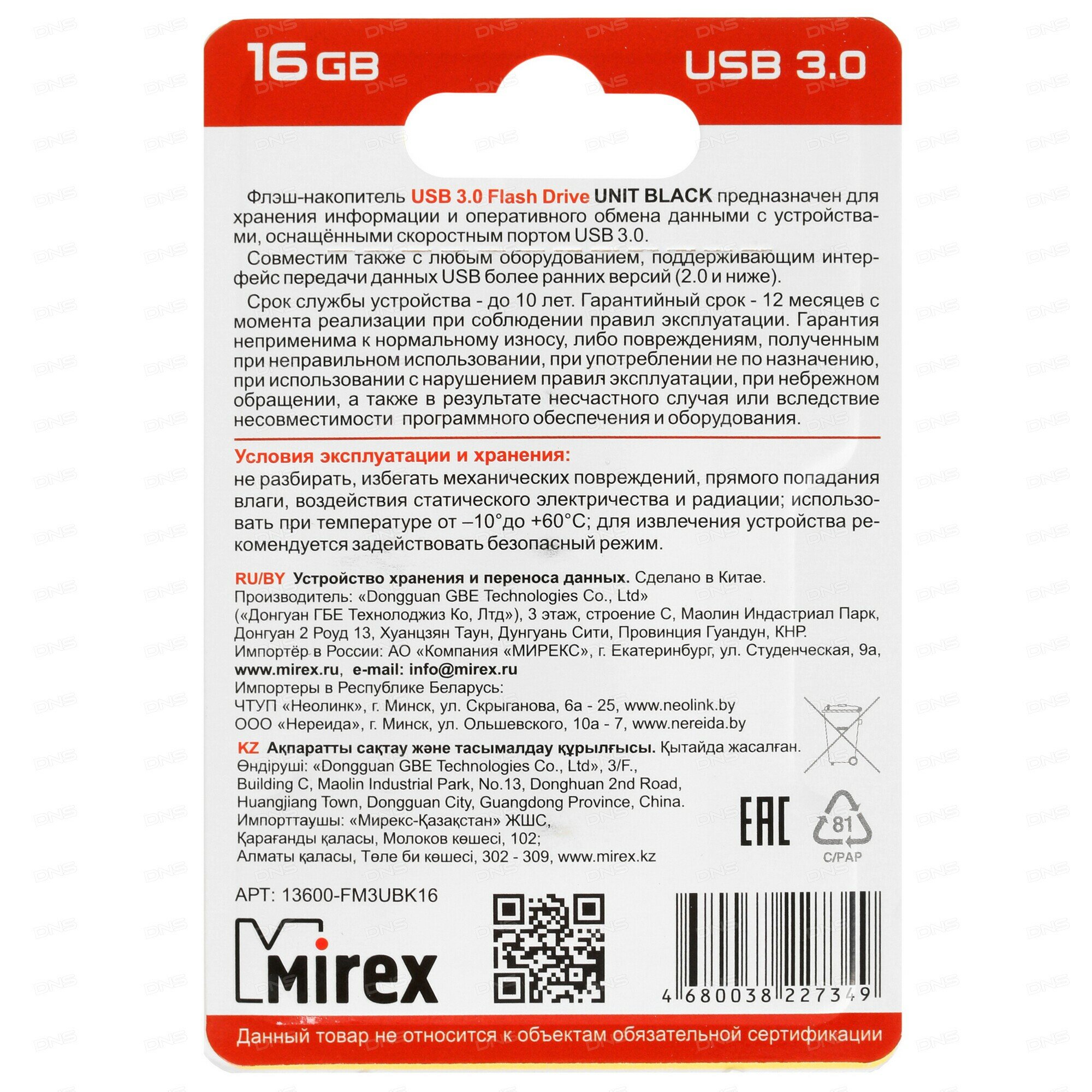 16Gb USB3.0 UNIT черная Mirex (13600-FM3UBK16)