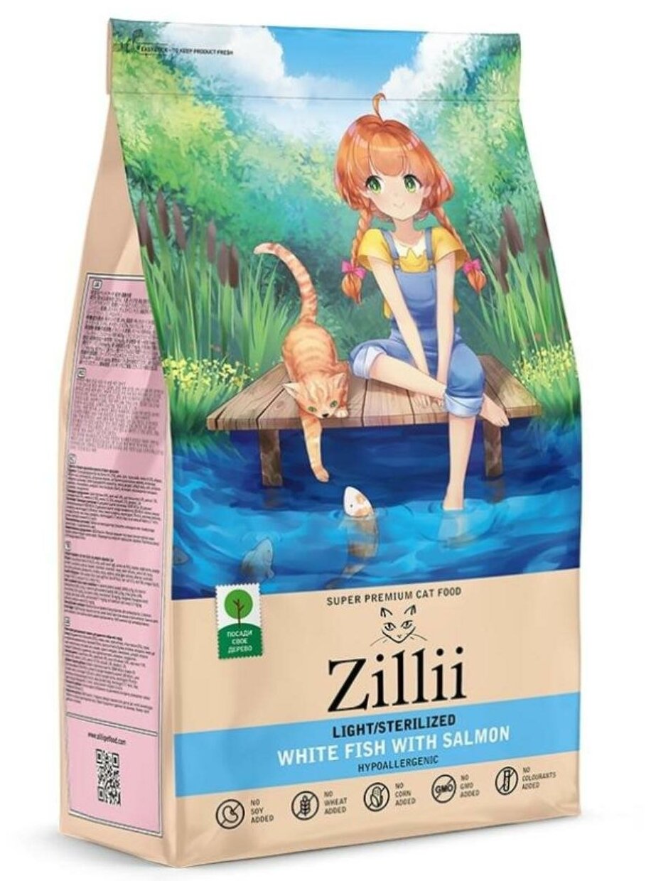Light/Sterilized Cat с избыт.весом и стерилиз. белая рыба с лососем сух. 2кг ZILLII