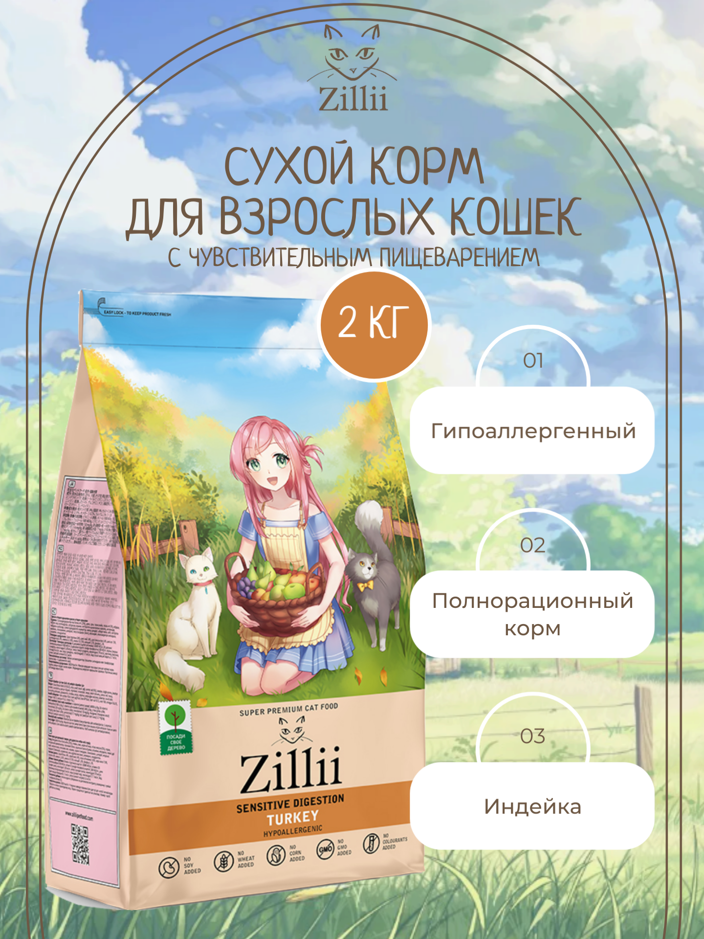 Sensitive Digestion Cat с чувствительным пищеварением индейка сух. 2кг ZILLII