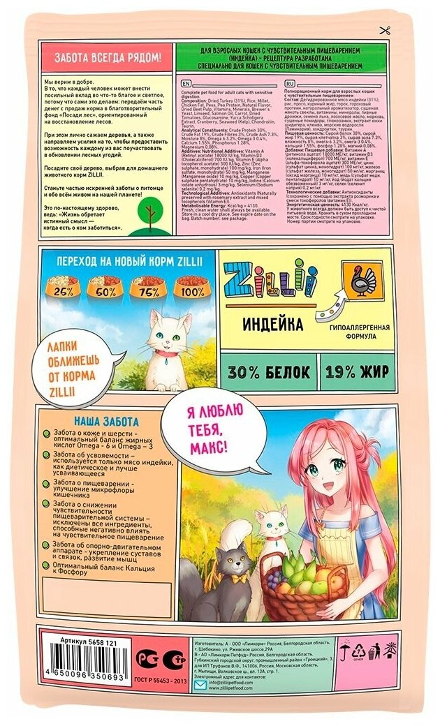 Рецептура ZILLII SENSITIVE DIGESTION специально создана для кошек с чувствительным пищеварением.