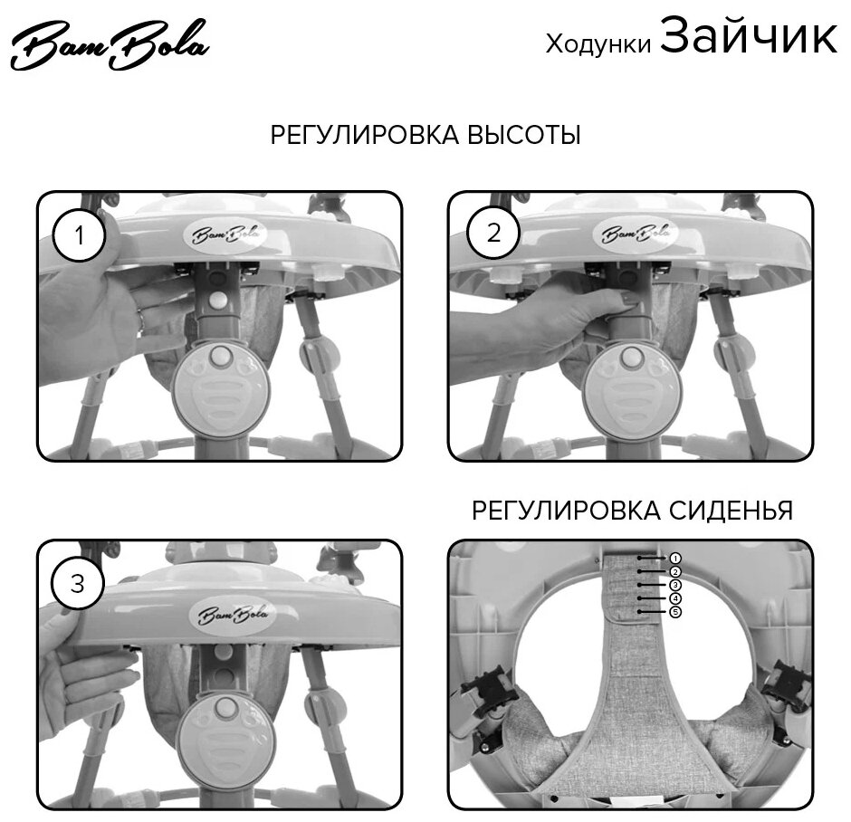 Ходунки Bambola "Зайчик" подготовят малыша к первым самостоятельным шагам, развивают координацию движений и помогают ребенку научиться держать равновесие. Имеют съемную музыкальную игровую панель со световыми и звуковыми эффектами. Мягкое, удобное сиденье. Ходунки легко регулируются в зависимости от роста ребенка.