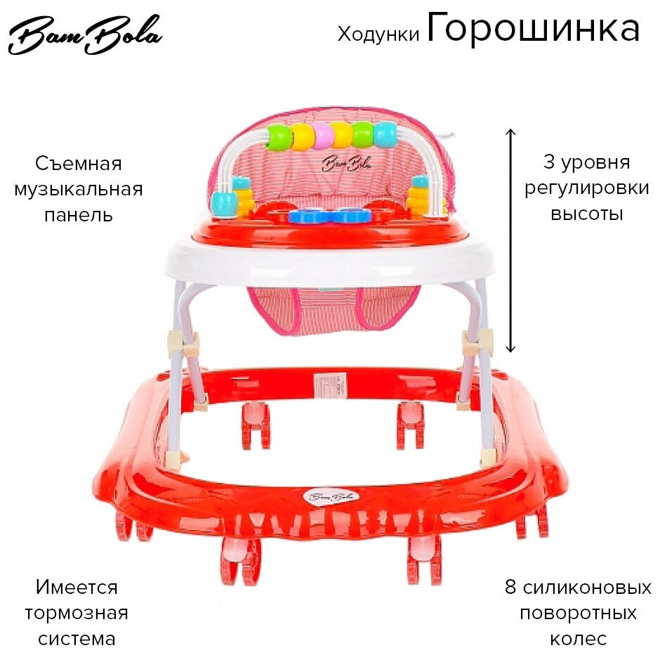 Ходунки, помимо уникального дизайна и неповторимого стиля, позволяют вашему ребенку изучать слова и повышать свой кругозор с помощью музыкального устройства, расположенного на ходунках.