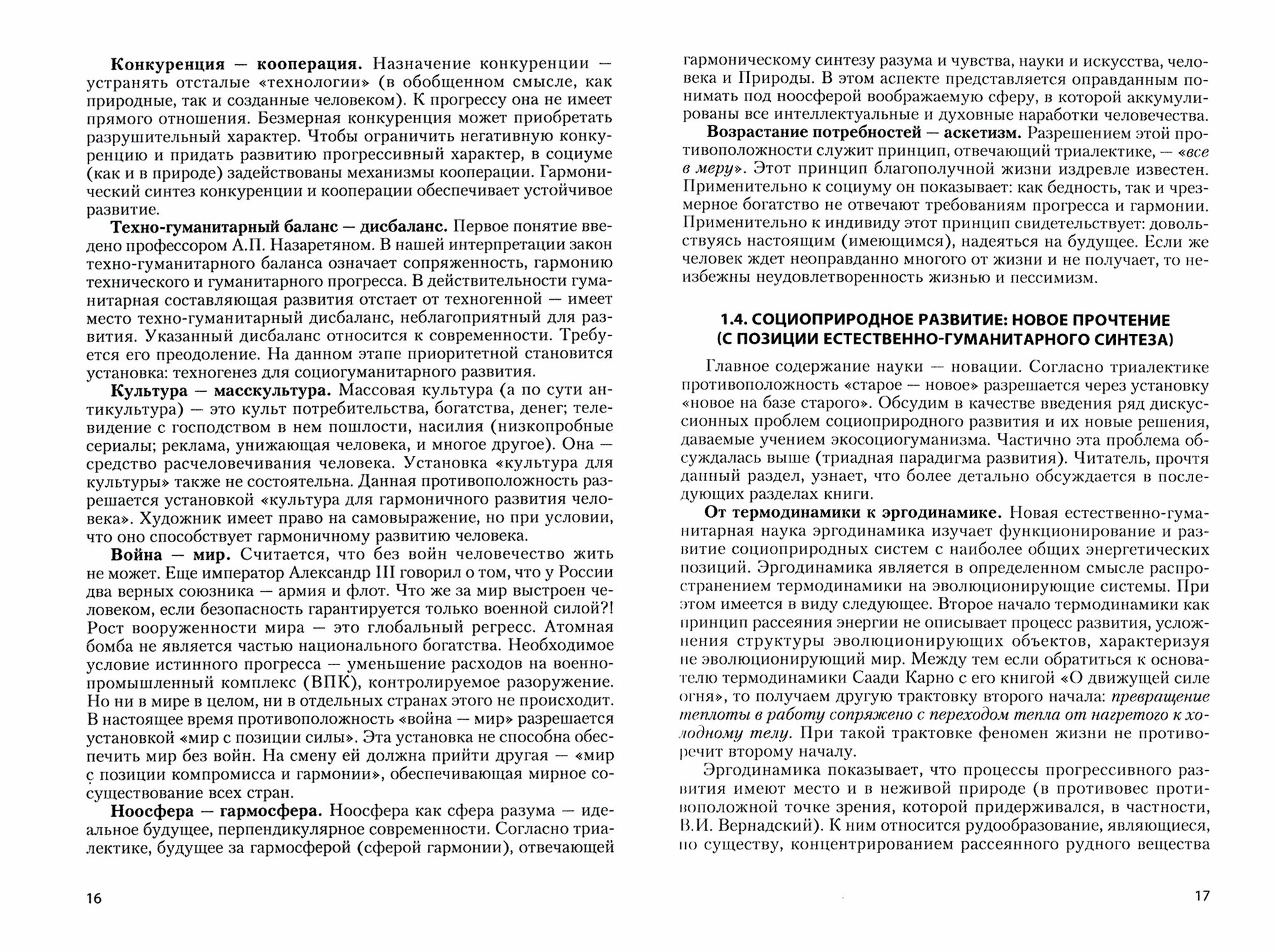 В монографии с позиций новой естественно-гуманитарной науки эргодинамики и науки о гармонии излагается учение экосоциогуманизма. Экосоциогуманизм выступает как разрешение противоположности "капитализм - социализм" на основе их гармонического синтеза. При этом от социализма берется цель - гармоническое развитие человека, от капитализма способ ее реализации - регулируемый рынок. Основные составляющие экосоциогуманизма: теория социоприродного развития, триалектика - учение о гармонии, наука о человеке (человековедение), концепция национального богатства и качества жизни, теория социогуманитарного государства, идеология социогуманизма. Сущность социогуманитарного перехода: от "общества потребления" к "обществу экосоциогуманизма", от социального к социогуманитарному государству, от "человека социального" к "человеку социально-духовному" ("Человеку Гармоничному"). Научно обоснована эволюционная траектория развития "либерализм - интегрализм - экосоциогуманизм".