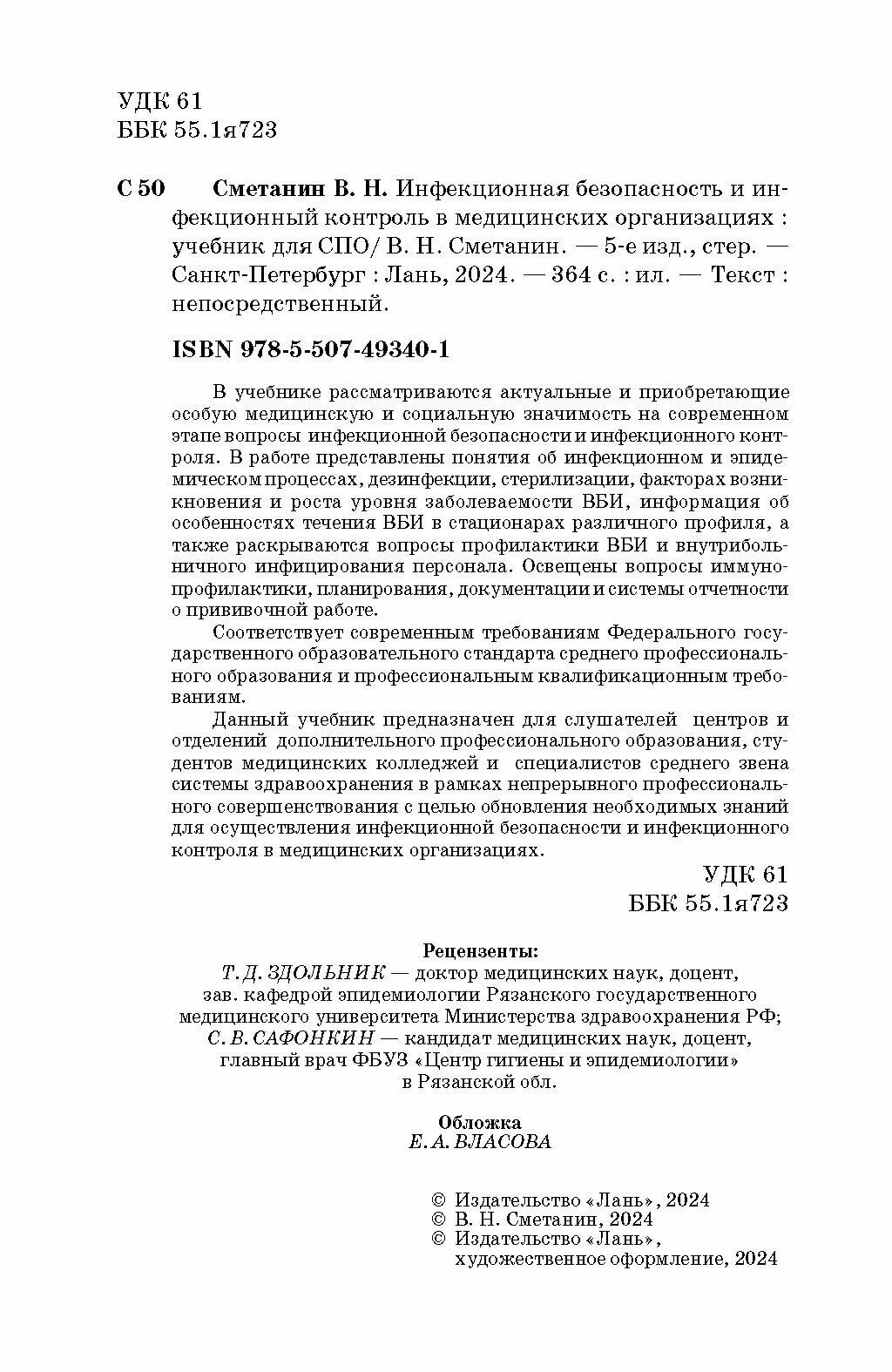 Сервис сравнения цен СкидкаГИД предлагает сравнить цены на товар «Книга: Инфекционная безопасность и инфекционный контроль в мед. организациях. Учебное пособие для СПО (В. Н. Сметанин); Издательство ЛАНЬ, 2022»