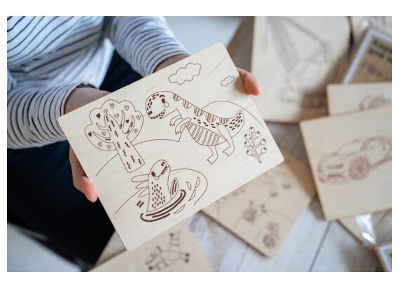 Набор из 4 деревянных заготовок для детей, которые увлекаются выжиганием или раскрашиванием. На каждую из досок нанесены контурные детализированные изображения милых динозавров. Доски выполнены из качественной березовой фанеры. Поверхность отлично отшлифована, ровная, без шероховатостей и зазубрин.