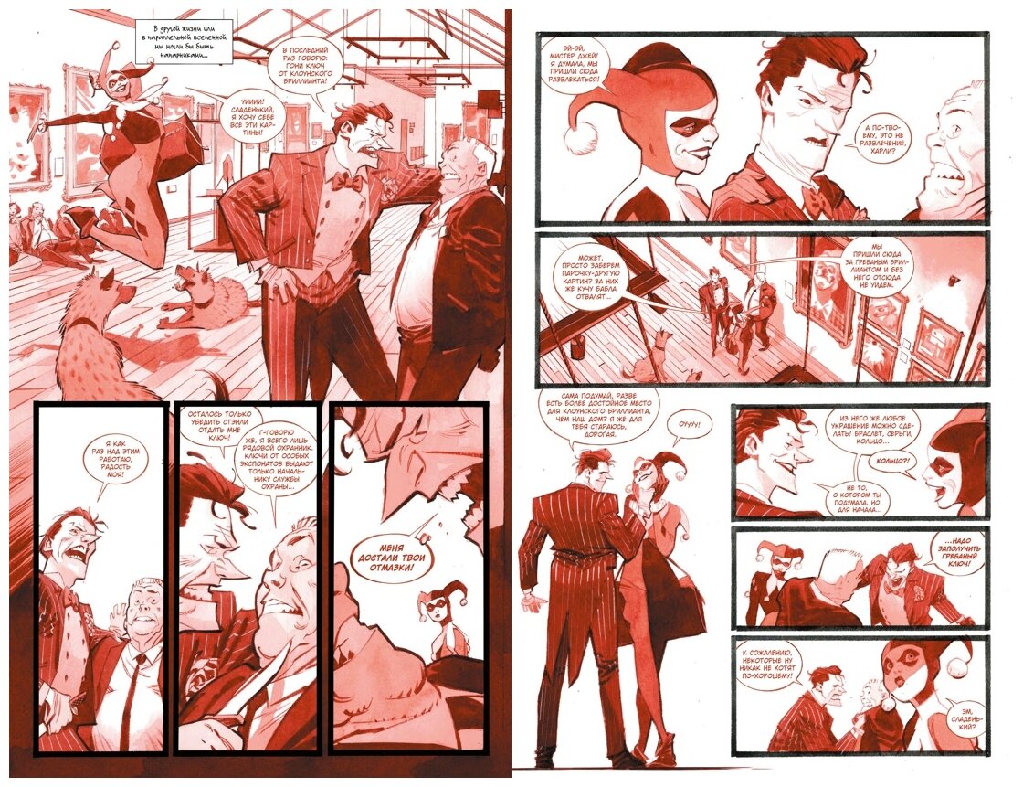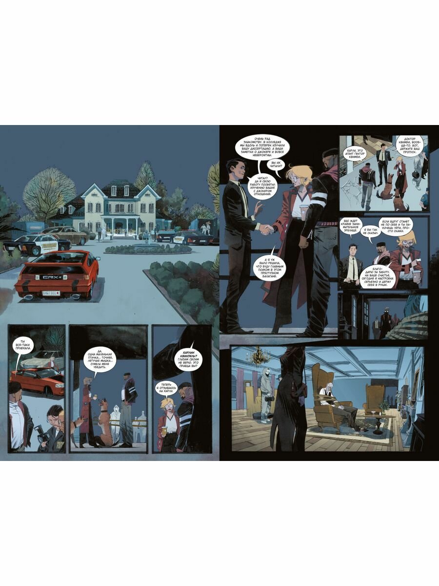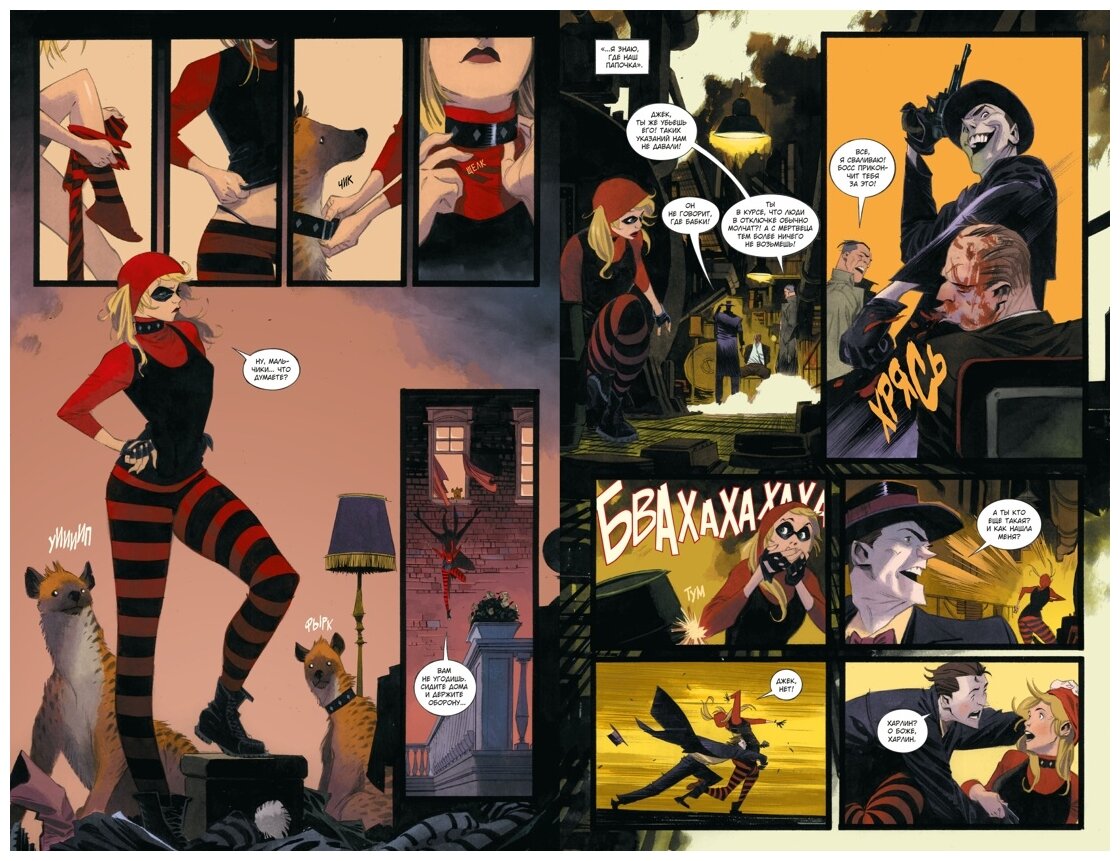 Это продолжение вселенной Бэтмен Белый рыцарь и Проклятье Белого рыцаря. Хорошая история про Харли Квинн, которая выступает матерью, владелицей гиен, психологом, детективом и помощником Готемской полиции. Рисунок подходящий для этой истории, много забавных моментов как семейных, так и детективных. Неоджокер мне понравился) Рекомендую всем к прочтению!