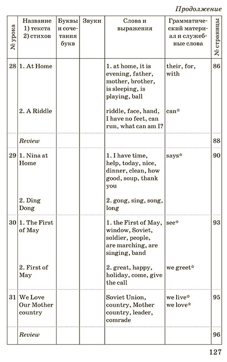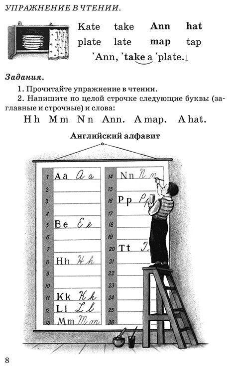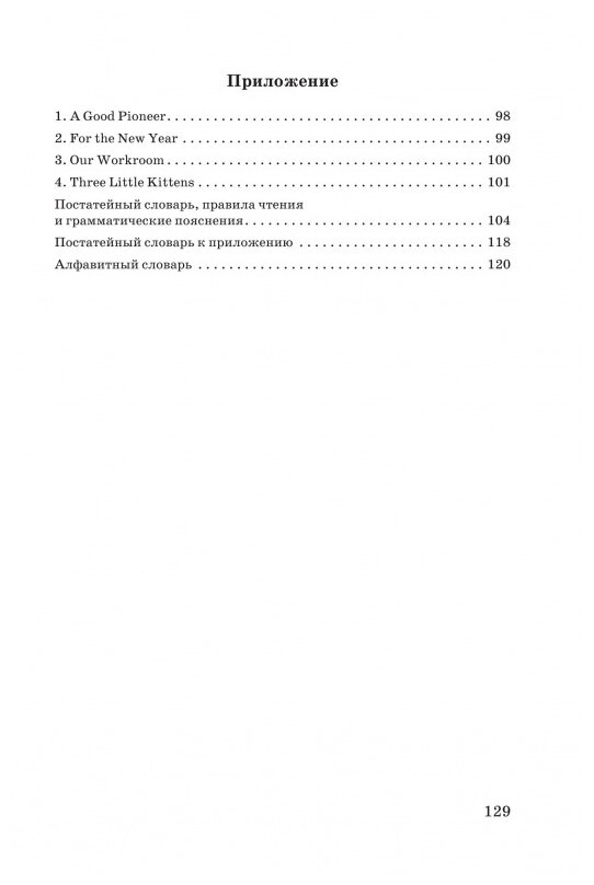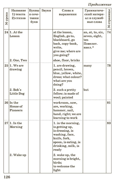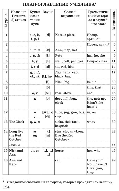 Издание используется для первого года обучения иностранному языку. Изучение языков — необходимая составляющая гармоничного развития ребенка. Для того чтобы заложить крепкий фундамент успешного освоения английского в будущем, в книге сделан особый акцент на чтение и навыки письма. Для удобства восприятия и закрепления новой информации программа разделена на 31 урок, каждый из которых снабжён иллюстрациями, словарем, правилами чтения и грамматическими пояснениями.