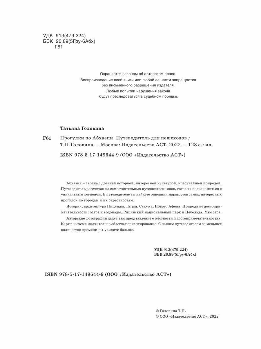 Сервис сравнения цен СкидкаГИД предлагает сравнить цены на товар «Книга: Прогулки по Абхазии (Головина Татьяна Петровна); ИЗДАТЕЛЬСТВО "АСТ", 2022»