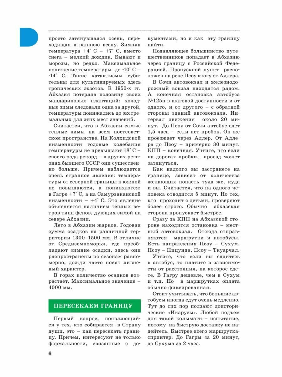 Абсолютно согласна с автором предыдущей рецензии. Книга – отличная! У меня есть несколько путеводителей по Абхазии, и этот – лучший из них, бесспорно! Во-первых, все данные свежие, с учетом нынешних реалий
