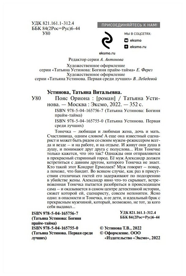 Книга: Пояс Ориона (Татьяна Витальевна Устинова); Эксмо, 2022