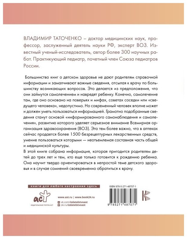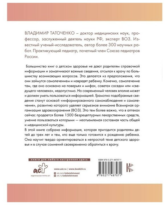 Большинство книг о детском здоровье не дают родителям справочной информации и замалчивают важные сведения, отсылая к врачу по большинству возникающих вопросов. Это делается из предположения, что они займутся самолечением и навредят ребенку. Конечно, самолечение там, где оно основано на поверьях и мифах, советах соседки или «сведущего человека», недопустимо. Но современный человек вполне может и должен уметь пользоваться информацией. Грамотно подобранные сведения станут основой «информированного самонаблюдения и самолечения», развитию которого уделяет серьезное внимание Всемирная организация здравоохранения (ВОЗ). Это тем более важно, что в аптеках сейчас продается более 1500 безрецептурных лекарственных средств, умение пользоваться которыми — неотъемлемая составная часть общей и медицинской культуры.