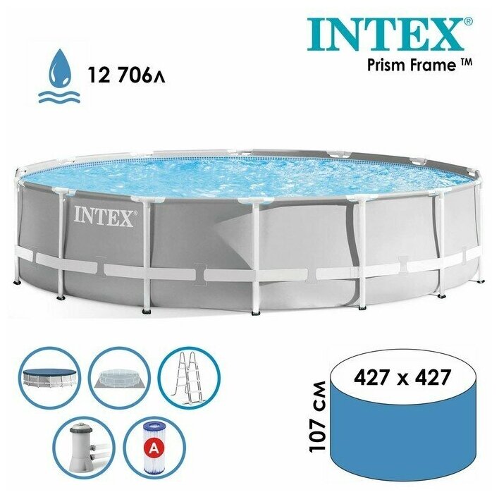 Бассейн каркасный круглый "PRISM FRAMETM" 427х107см насос лестница подстилка 26720NP Intex ampquotPRISM FRAMETMampquot 427107 26720NP