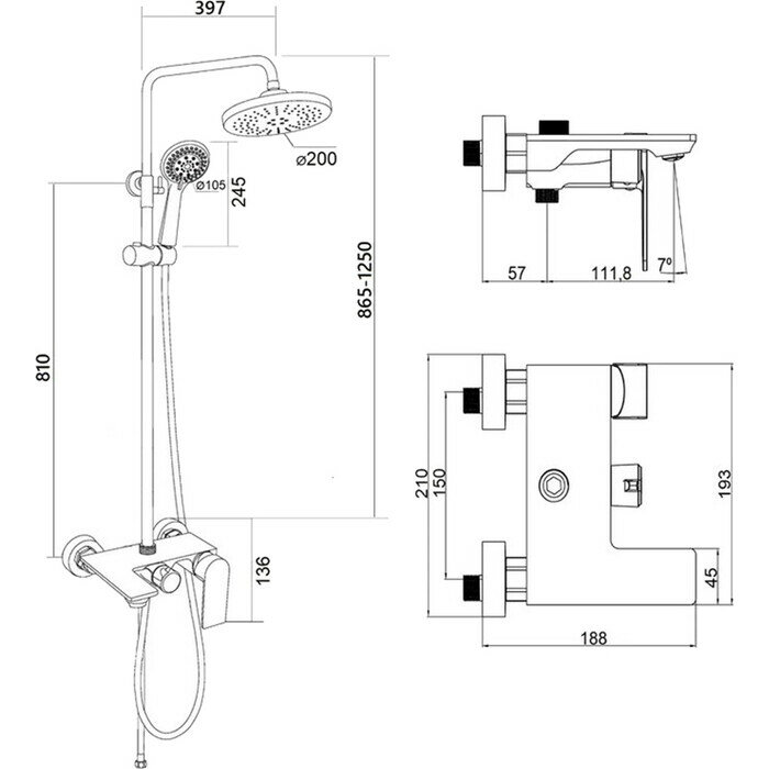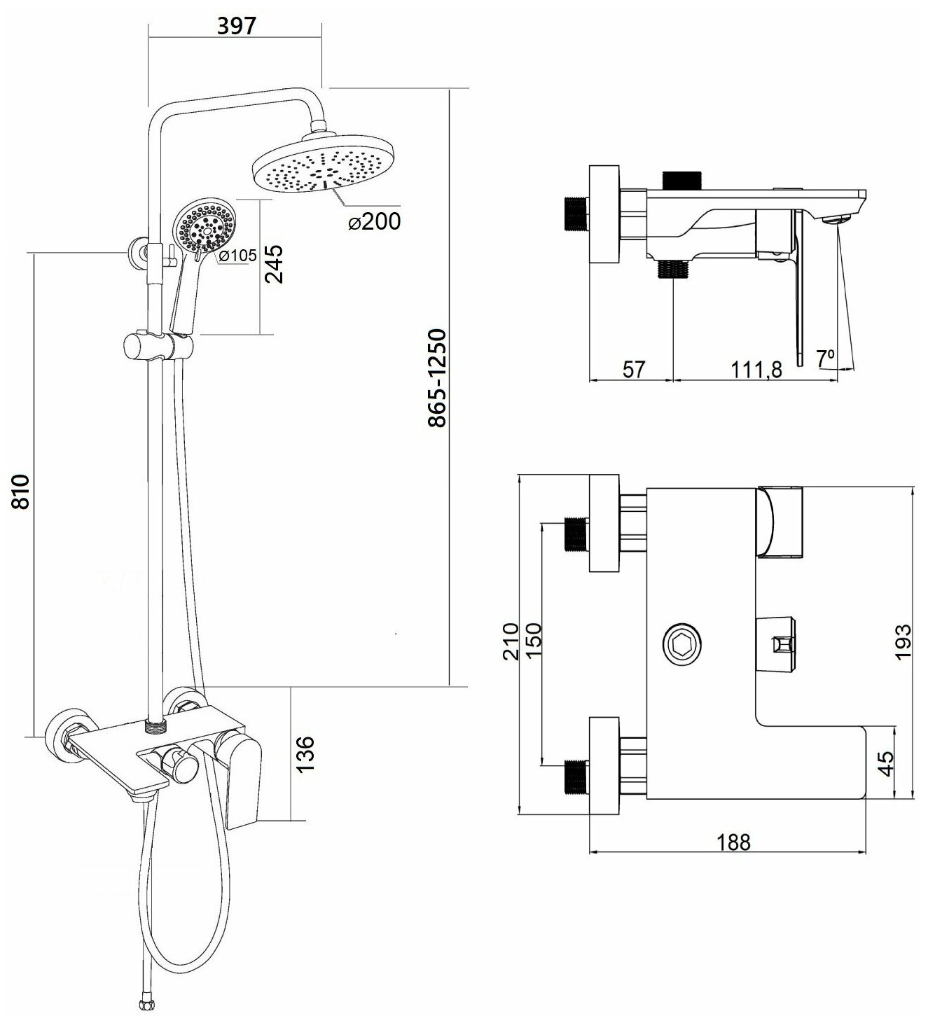 | Комплект поставки | Верхний душ, Держатель для лейки, Душевая лейка, Душевая штанга, Смеситель, Шланг для душ |