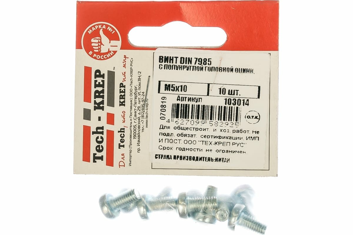 На сегодняшний день товар «винт din7985 с полукруглой головкой оцинк. м5х10 (10 шт) Tech-Krep» можно купить с кешбеком в 1 магазине: Яндекс.Маркет