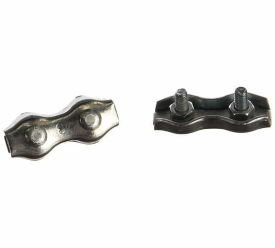 Зажим для тросов изготовлен из оцинкованной стали, предназначен для соединения тросов и изготовления петель на концах троса.